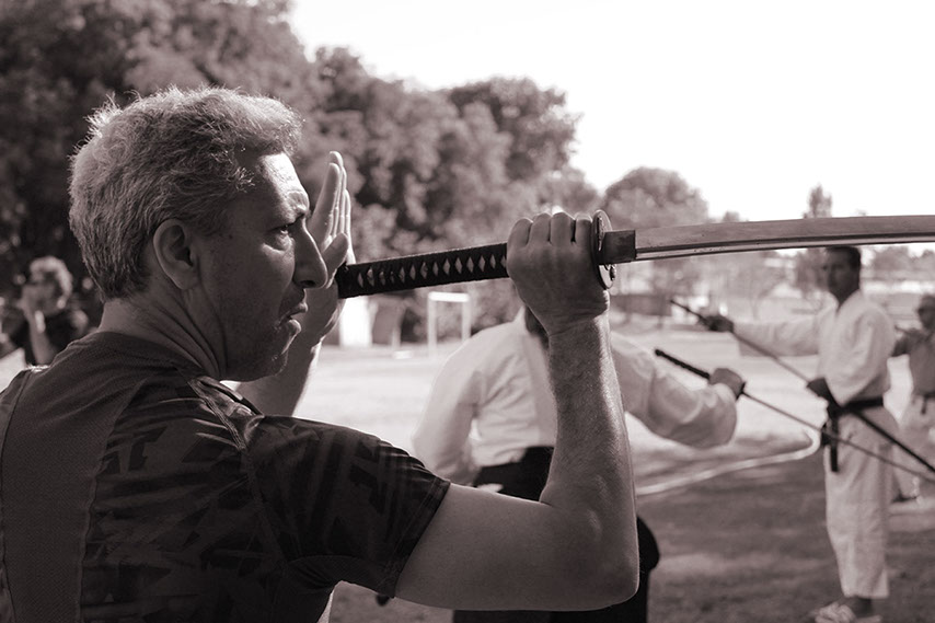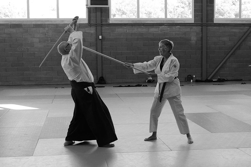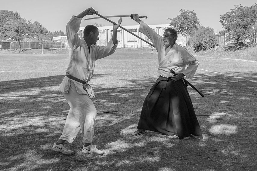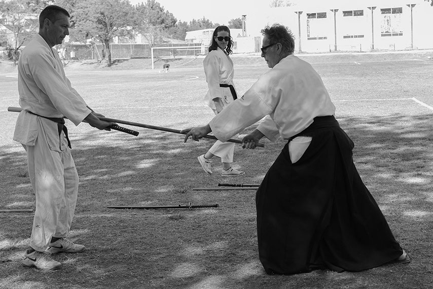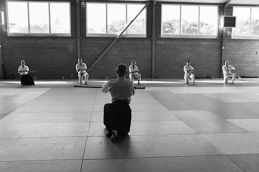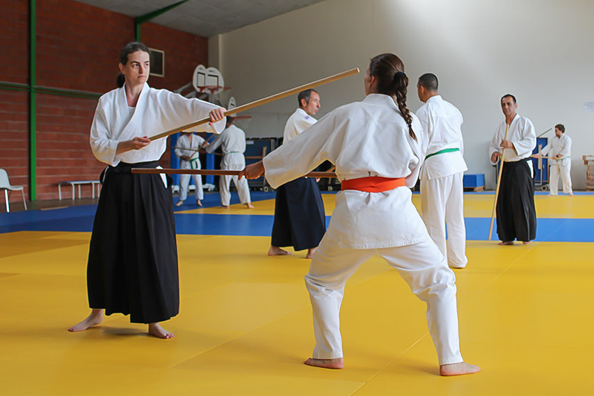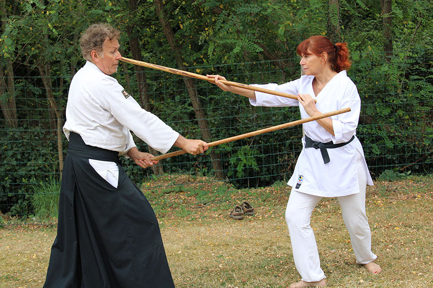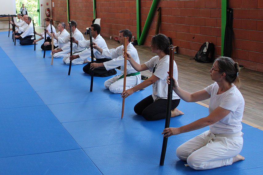 Nous n'avons su que très tard que le stage d'été serait maintenu. Finalement, le centre sportif de Boyardville a ouvert ses portes avec les consignes sanitaires d'usage et une restriction de chambres allouées. Nous étions donc moins nombreux que les autres années et pour respecter la distanciation physique et sociale, nous avons dû travailler en deux groupes, l'un dans le dojo et l'autre en extérieur en alternance. Enfin, pour éviter tout contact, nous avons pratiqué exclusivement les armes (jo, boken et katana), ce qui n'a pas empêché la diversité puisque puisque Maître Brun nous a légué une pratique aux armes particulièrement développée et riche, cela dès les premiers kyu.