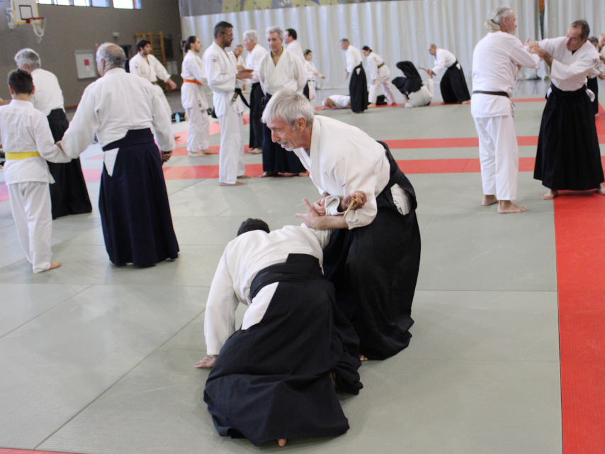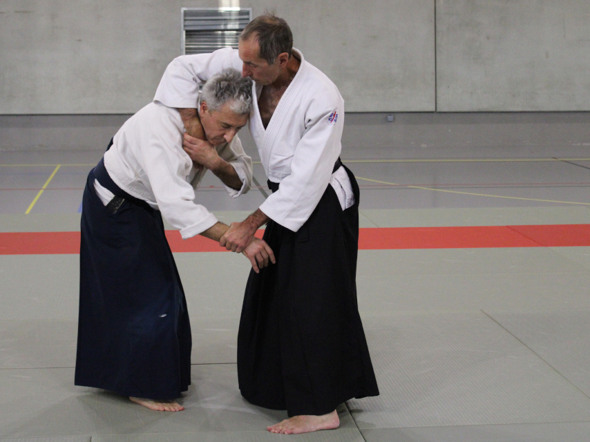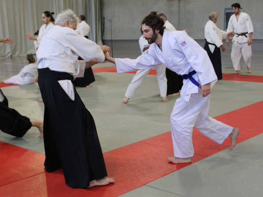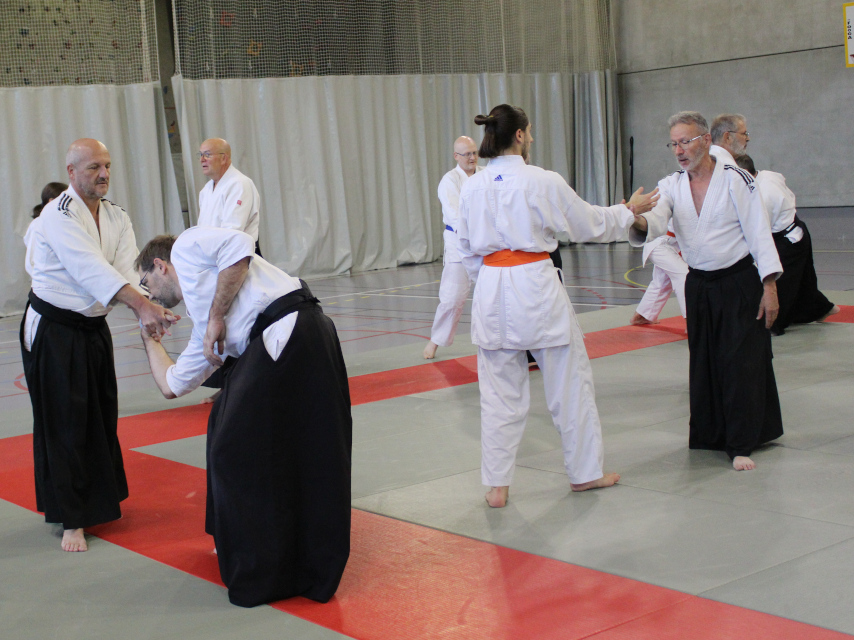 Le club de Juku Aïkido Club accueille je stage national automnal à Saint Martin d’Uriage en Rhône-Alpes. Salah TEBBAKH, Délégué des Conseillers Techniques Nationaux pour la saison 2025/2026, assume l’animation technique. Presque toutes les ligues sont représentées avec la représentation de différentes générations pour composer un groupe de participants attentifs à l’enseignement proposé durant ce weekend avant l'Armistice. Pour la majorité des techniques, une saisie intervient, soit pour débuter, soit en cours de réalisation. Nous avons aussi travaillé sur une saisie atypique du poignet venant du bas vers le haut, c’est-à-dire par-dessous, le pouce côté main. La réalisation de nombreux gestes sont possibles avec différents déplacements. Différentes manières de conduire Kote Gaeshi sont proposées afin de ressentir les réactions de Uke en fonction du déséquilibre, du déplacement, ... Une nouvelle fois, un stage qui permet de voir une approche différente pour sa culture personnelle afin de progresser encore et encore avancer. Une jolie fréquentation est à noter pour ce weekend avec la joie de pratiquer, d’échanger et de découvrir !