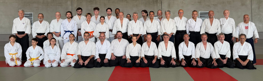 Le stage se déroule la première semaine du mois d’août avec une jolie participation et des pratiquants venus d’autres horizons tels Bruno, Brigitte, Mohamed, Nathalie et Patrick du GHAAN, venus des Ardennes. Le matin, les séances étaient dirigées par Salah TEBBAKH, délégué de la CTN pour la saison 2025/2026. Les après-midis commençaient par un cours d'armes, plutôt de Bokken et de Katana, animé alternativement par Valérie CLARAC et Dominique TOURON, puis succédaient avec un cours d’Aïkido guidé par François NOIZÉE ou Jean-Yves PRÉ. Une semaine enrichissante pour tous les pratiquants avec une diversité intéressante dans l'approche de la pratique avec toujours des moments d’échanges et de partages, mais aussi de moments conviviaux dans une ambiance de travail dans le dojo et de dilettante partout ailleurs. Un passage de grade était également prévu pour un candidat de la ligue Nouvelle Aquitaine pour montrer le programme qu’il avait préparé en amont afin de franchir cette nouvelle étape, une réussite à cet examen pour récompenser son travail de préparation avec la nomination au grade de premier Dan. Un séjour très agréable, vraiment constructif avec des animations intéressantes avec une approche différente de chacun des intervenants mais aussi avec des stagiaires attentif pour avancer encore et encore dans la Voie !