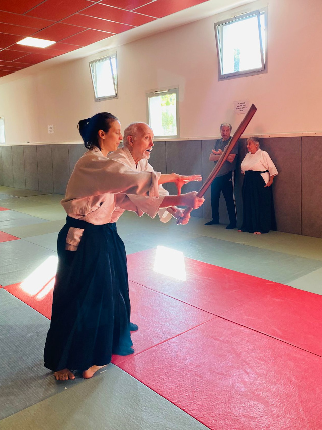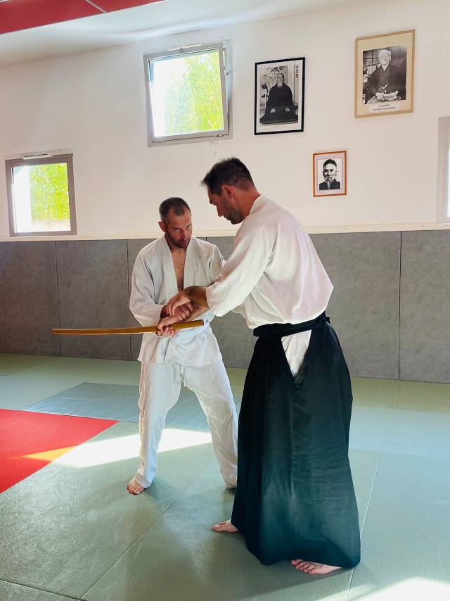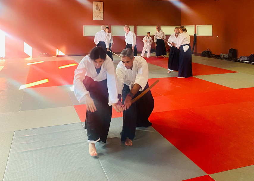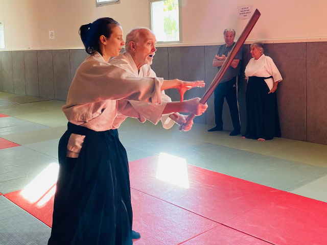 Le stage se déroule la première semaine du mois d’août avec une jolie participation et des pratiquants venus d’autres horizons tels Bruno, Brigitte, Mohamed, Nathalie et Patrick du GHAAN, venus des Ardennes. Le matin, les séances étaient dirigées par Salah TEBBAKH, délégué de la CTN pour la saison 2025/2026. Les après-midis commençaient par un cours d'armes, plutôt de Bokken et de Katana, animé alternativement par Valérie CLARAC et Dominique TOURON, puis succédaient avec un cours d’Aïkido guidé par François NOIZÉE ou Jean-Yves PRÉ. Une semaine enrichissante pour tous les pratiquants avec une diversité intéressante dans l'approche de la pratique avec toujours des moments d’échanges et de partages, mais aussi de moments conviviaux dans une ambiance de travail dans le dojo et de dilettante partout ailleurs. Un passage de grade était également prévu pour un candidat de la ligue Nouvelle Aquitaine pour montrer le programme qu’il avait préparé en amont afin de franchir cette nouvelle étape, une réussite à cet examen pour récompenser son travail de préparation avec la nomination au grade de premier Dan. Un séjour très agréable, vraiment constructif avec des animations intéressantes avec une approche différente de chacun des intervenants mais aussi avec des stagiaires attentif pour avancer encore et encore dans la Voie !