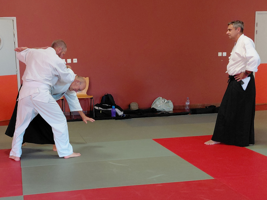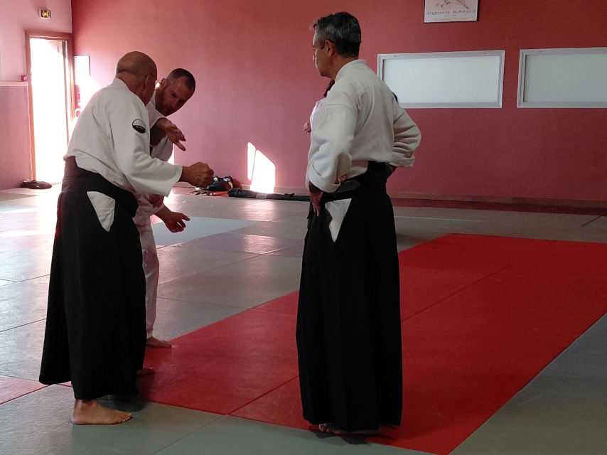 Le premier stage de cet an nouveau se déroule au Dojo du Complexe Sportif de l’Estagnol. Initialement prévu Ecole des Cadres le matin et l'après-midi pour tout public. Afin d’offrir la possibilité à un plus grand nombre, des ateliers sont proposés dès le matin. Pour la formation des potentiels candidats au Brevet fédéral, une innovation un parrain est attribué, plutôt choisi pour les aider, les conseiller dans la démarche de recherche et de compréhension ainsi qu’un Uke pour la séance. De l’autre côté, un panel de pratiquants hétéroclites, du débutant à celui qui est sur les tatamis depuis de nombreuses années. Des participants motivés par le travail qui est proposé pour la matinée en offrant les diverses possibilités sur Gyaku et Aï Hanmi. Des possibilités différentes sont instruites dans le déplacement pour l’importance de la posture, de la notion de la position dans l'espace pour conduire la technique. Pour la pause déjeuner, pour l’instant de gourmandise, le partage par chacun au Club House permet de se restaurer et se détendre. L’après-midi, c’est un cours qui débute à mains nues avec une attaque Shomen Uchi pour appréhender l’esquive et dérouler un éventail de gestes. Ensuite, c’est le Bokken pour les deux pratiquants, en Waza pour débuter sur encore une attaque Shomen Uchi et en Kata plus tard. Une ambiance studieuse qui permet d’apprendre et de progresser. Pour résumer, un stage nouveau qui a permis de se retrouver sur le tatami pour encore et toujours le plaisir de partager afin d’améliorer sa pratique.