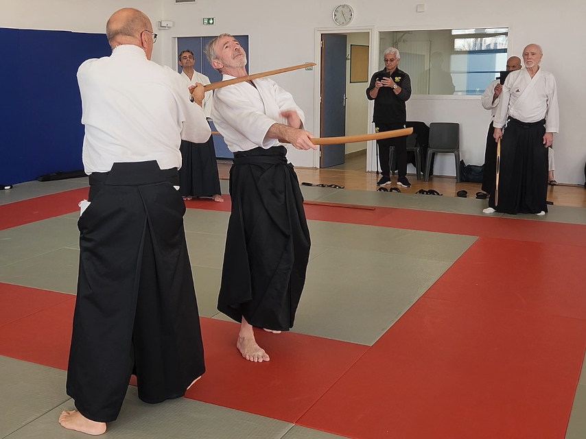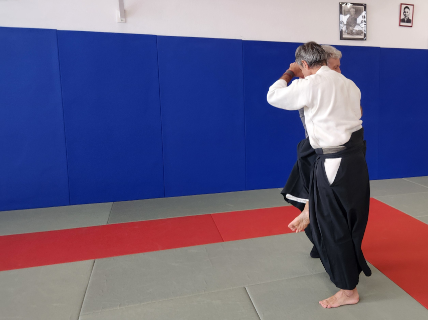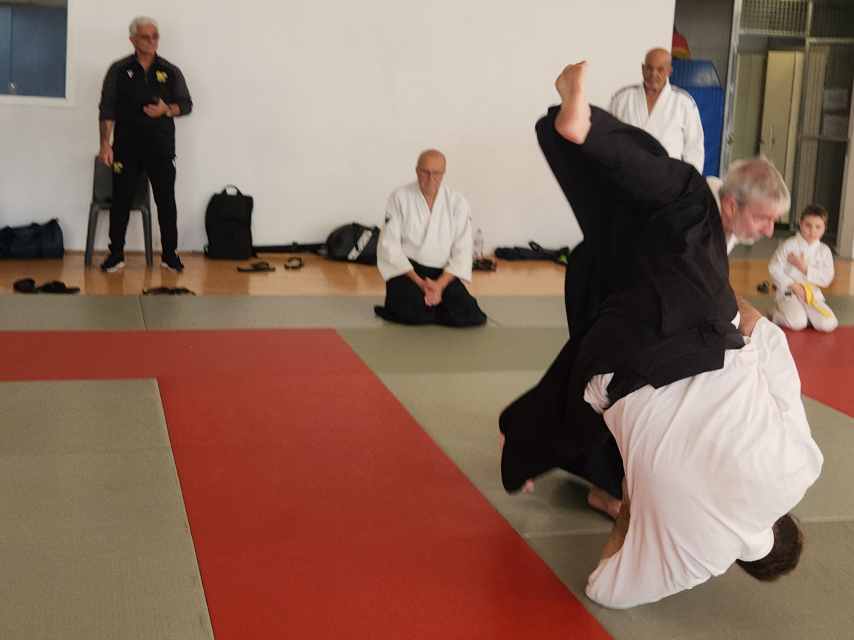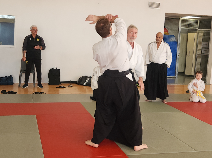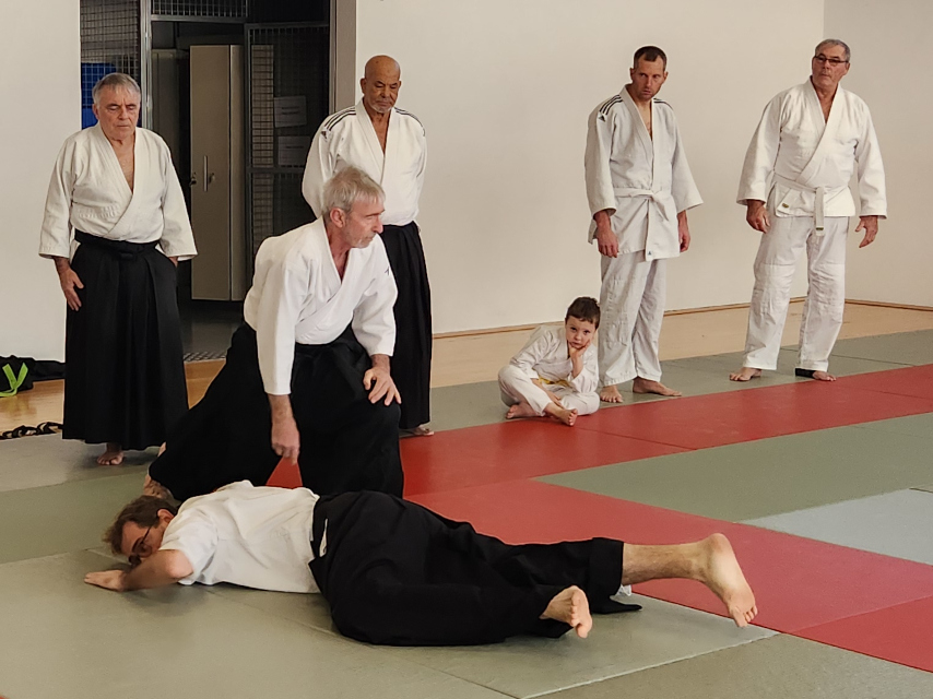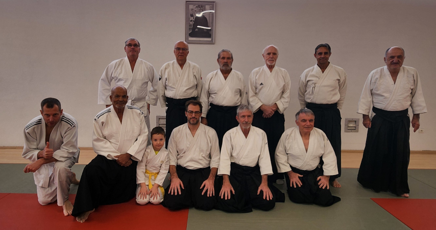 Pour terminer l’an 2025, le club de l'USC-Aïkido organise ce stage, sur la demande de la ligue, au Dojo du Complexe Sportif de l'Estagnol à La Moutonne. Nous ne sommes pas très nombreux avec quelques absents excusés, mais cela n’empêche pas la motivation et un déroulement du stage apprécié. Une surprise, un petit bonhomme heureux de son stage « Jeunes » de la veille est venu se joindre à nous. Tout le monde a pris soin de lui pour le guider au mieux dans sa vision d’enfant de la pratique proposée. Après l’échauffement et quelques Aïki Taïso, avec Kokyu Nage pour appréhender l’entrée dans la pratique avec la prise de conscience de son centre, son axe et sa posture, une attaque Shomen Uchi est proposé. Quelques gestes sont proposés sur absorption, une esquive Omote avec les bras bouclier et une autre plus Irimi avec un Henka pour Jyu Waza. Il est montré quelques gestes pour les Kyus afin qu’ils puissent aussi trouver plaisir à pratiquer avec les acquis. Pour conclure, un travail au Bokken avec le contrôle du centre d’Uke et une partie du Kata Miroir. Un petit repas au Clubhouse en comité très restreint permet de se détendre et de profiter de la clémence du climat.