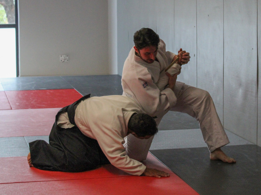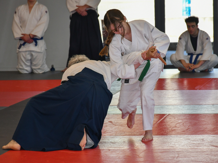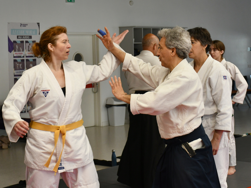 Le stage national de Pâques s'est déroulé au Complexe Sportif de Pessac Bellegrave sous la direction technique du Conseiller Technique National Salah TEBBAKH, délégué de la CTN pour la saison 2025/2026. Un stage intensif et soutenu où le travail de saisie avec attaque est la ligne de conduite. Chaque séance débute par toucher l’épaule avec la conscience de l’esquive. Un autre leitmotiv le bâton à deux avec trois attaques imposées cheville, tête et côtes à tour de rôle pour alterner protection et ripostes tout en bougeant pour trouver l’ouverture. Le travail du Tanto est omniprésent durant tout le stage avec différentes attaques, entrées et immobilisations variées avec des formes spécifiques. Le contrôle du coude qui conduit vers une technique est aussi montré pour enchaîner en autre Sankyo. L'Atemi est évoqué pour son rôle dans la réussite d’un geste technique avec différentes recherches en occupant le partenaire ou en le mettant en mauvaise posture afin de profiter de ce moment afin de réaliser une technique. La base de Koshi Nage est aussi abordée pour voir la posture et l’extension pour ce geste technique. Un exercice au Bokken à deux permet de travailler Suburi, protection et changement de l’axe avec frappe et esquive.