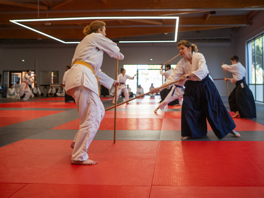 Le stage se déroule la première semaine du mois d’août avec une jolie participation et des pratiquants venus d’autres horizons tels Bruno, Brigitte, Mohamed, Nathalie et Patrick du GHAAN, venus des Ardennes. Le matin, les séances étaient dirigées par Salah TEBBAKH, délégué de la CTN pour la saison 2025/2026. Les après-midis commençaient par un cours d'armes, plutôt de Bokken et de Katana, animé alternativement par Valérie CLARAC et Dominique TOURON, puis succédaient avec un cours d’Aïkido guidé par François NOIZÉE ou Jean-Yves PRÉ. Une semaine enrichissante pour tous les pratiquants avec une diversité intéressante dans l'approche de la pratique avec toujours des moments d’échanges et de partages, mais aussi de moments conviviaux dans une ambiance de travail dans le dojo et de dilettante partout ailleurs. Un passage de grade était également prévu pour un candidat de la ligue Nouvelle Aquitaine pour montrer le programme qu’il avait préparé en amont afin de franchir cette nouvelle étape, une réussite à cet examen pour récompenser son travail de préparation avec la nomination au grade de premier Dan. Un séjour très agréable, vraiment constructif avec des animations intéressantes avec une approche différente de chacun des intervenants mais aussi avec des stagiaires attentif pour avancer encore et encore dans la Voie !