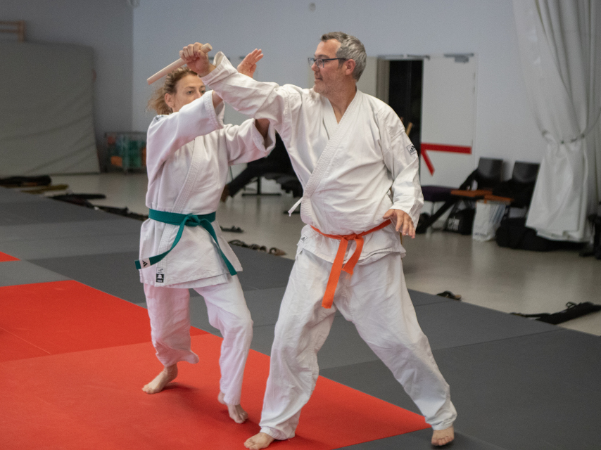 Le stage national de Pâques s'est déroulé au Complexe Sportif de Pessac Bellegrave sous la direction technique du Conseiller Technique National Salah TEBBAKH, délégué de la CTN pour la saison 2025/2026. Un stage intensif et soutenu où le travail de saisie avec attaque est la ligne de conduite. Chaque séance débute par toucher l’épaule avec la conscience de l’esquive. Un autre leitmotiv le bâton à deux avec trois attaques imposées cheville, tête et côtes à tour de rôle pour alterner protection et ripostes tout en bougeant pour trouver l’ouverture. Le travail du Tanto est omniprésent durant tout le stage avec différentes attaques, entrées et immobilisations variées avec des formes spécifiques. Le contrôle du coude qui conduit vers une technique est aussi montré pour enchaîner en autre Sankyo. L'Atemi est évoqué pour son rôle dans la réussite d’un geste technique avec différentes recherches en occupant le partenaire ou en le mettant en mauvaise posture afin de profiter de ce moment afin de réaliser une technique. La base de Koshi Nage est aussi abordée pour voir la posture et l’extension pour ce geste technique. Un exercice au Bokken à deux permet de travailler Suburi, protection et changement de l’axe avec frappe et esquive.