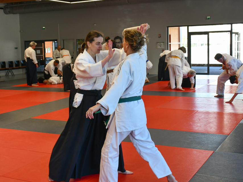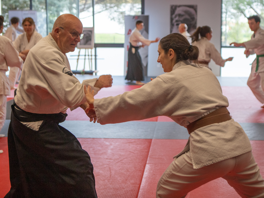 Le club de Juku Aïkido Club accueille je stage national automnal à Saint Martin d’Uriage en Rhône-Alpes. Salah TEBBAKH, Délégué des Conseillers Techniques Nationaux pour la saison 2025/2026, assume l’animation technique. Presque toutes les ligues sont représentées avec la représentation de différentes générations pour composer un groupe de participants attentifs à l’enseignement proposé durant ce weekend avant l'Armistice. Pour la majorité des techniques, une saisie intervient, soit pour débuter, soit en cours de réalisation. Nous avons aussi travaillé sur une saisie atypique du poignet venant du bas vers le haut, c’est-à-dire par-dessous, le pouce côté main. La réalisation de nombreux gestes sont possibles avec différents déplacements. Différentes manières de conduire Kote Gaeshi sont proposées afin de ressentir les réactions de Uke en fonction du déséquilibre, du déplacement, ... Une nouvelle fois, un stage qui permet de voir une approche différente pour sa culture personnelle afin de progresser encore et encore avancer. Une jolie fréquentation est à noter pour ce weekend avec la joie de pratiquer, d’échanger et de découvrir !