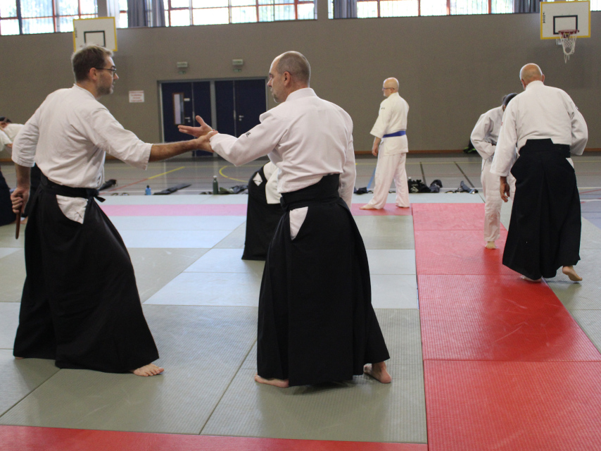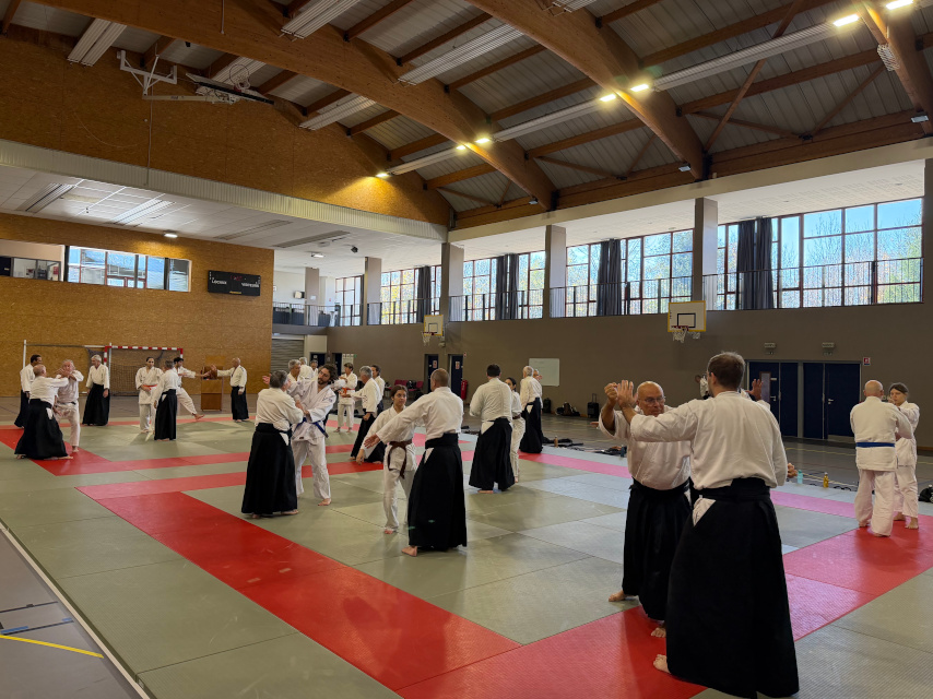 Le club de Juku Aïkido Club accueille je stage national automnal à Saint Martin d’Uriage en Rhône-Alpes. Salah TEBBAKH, Délégué des Conseillers Techniques Nationaux pour la saison 2025/2026, assume l’animation technique. Presque toutes les ligues sont représentées avec la représentation de différentes générations pour composer un groupe de participants attentifs à l’enseignement proposé durant ce weekend avant l'Armistice. Pour la majorité des techniques, une saisie intervient, soit pour débuter, soit en cours de réalisation. Nous avons aussi travaillé sur une saisie atypique du poignet venant du bas vers le haut, c’est-à-dire par-dessous, le pouce côté main. La réalisation de nombreux gestes sont possibles avec différents déplacements. Différentes manières de conduire Kote Gaeshi sont proposées afin de ressentir les réactions de Uke en fonction du déséquilibre, du déplacement, ... Une nouvelle fois, un stage qui permet de voir une approche différente pour sa culture personnelle afin de progresser encore et encore avancer. Une jolie fréquentation est à noter pour ce weekend avec la joie de pratiquer, d’échanger et de découvrir !
